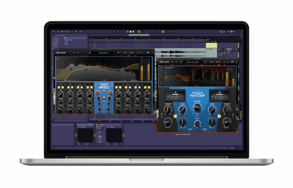 Our passive EQ Pulsar MP-EQ and variable-bias compressor plugin Pulsar VM-COMP are designed to complement each other. This powerful combo constitutes a complete mastering chain that gives you a very musical and colorful control of the frequency spectrum and dynamics of your sound. Building on the legacy of the original models, this bundle provides the warm sound of tube-powered hardware, with some extra features added that will fit seamlessly into your workflow. Once you have tried them, these two plugins will stay in your master chain for all your projects!